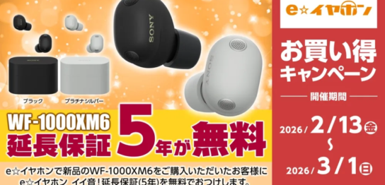【e☆イヤホンなら!】SONY WF-1000XM6延長保証最大5年無料キャンペ
