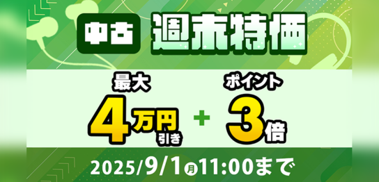 中古商品5%OFF&ポイント3倍に!8月25日(月)は中古の日を開催いたします!