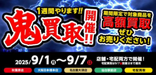 期間限定で対象商品の査定額が大幅アップいたします!期間は9/1~9/7まで! &