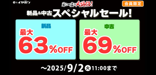 2025年9月3日最新版のe☆イヤホン中古商品お値下げ情報をお届けいたします!