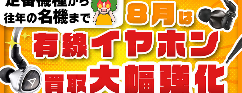 8月は有線イヤホンの買取を強化!定番モデルや往年の名機まで高額買取いたします!! … 続きを読む 【8月限定】有線イヤホン製品を高額買取!定番から名機まで【買取WANTED】