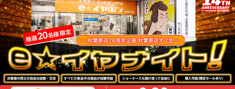 e☆イヤホン秋葉原店は9月で14周年を迎えます! Follow @eear_ic … 続きを読む 【8/30(土)】秋葉原店オフ会開催!「e☆イヤナイト」【秋葉原店14周年記念企画】