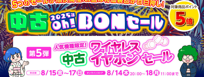 【8/15~8/17】大人気の中古ワイヤレスイヤホンセールを行います!【中古Oh!BON セール 2025第5弾】