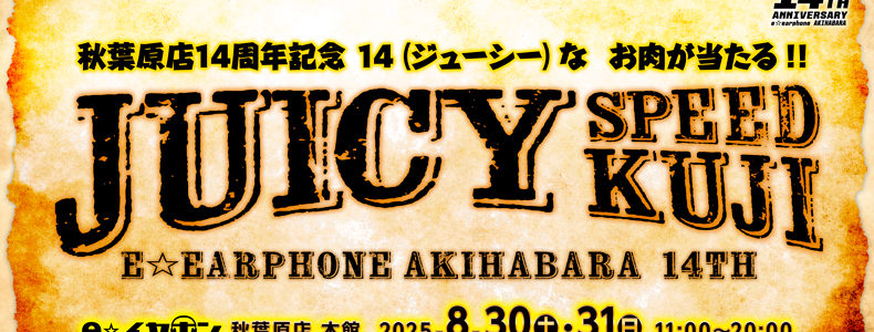 e☆イヤホン秋葉原店から耳寄りなイベント情報のお届け!! みなさまこんにちはー … 続きを読む 【08/30~31(土/日)】14(ジューシー)なお肉が当たる!!秋葉原店14周年記念スピードくじ【#eイヤ秋葉原店】