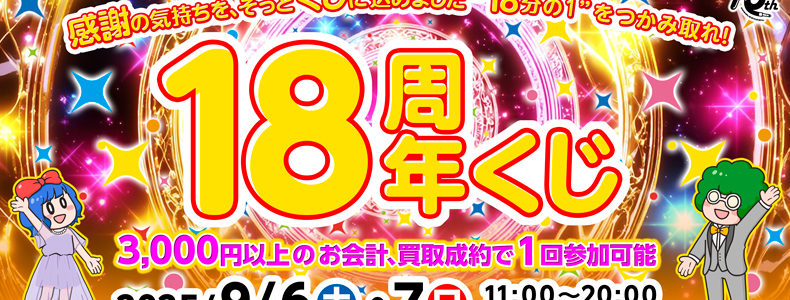 9月7日でe☆イヤホンは18周年を迎えます!すべては皆様のおかげ…ということで・ … 続きを読む 【#eイヤ18周年】 “18分の1”をつかみ取れ! 18周年くじ