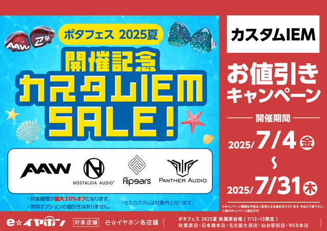 【ポタフェス 2025夏 開催記念】最大20%OFF!!カスタムIEMセール! – イヤホン・ヘッドホン専門店eイヤホンのブログ