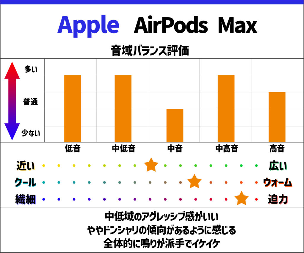 ノイキャンの性能が優秀、安定感がある。 音は、どちらかといえば、映画っぽいので、 移動中の使用で、映画をメインで楽しむ、 音で重視するポイントが「奥行き」な人におすすめ。 |