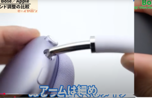Apple AirPods Max はアーム部分が細目、比較すると調整幅はやや少なめです。