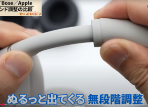 BOSE QC Ultra Headphonesも平らなアームでこちらもぬるっとサイズ調整ができる無段階。