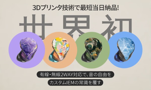 業界最速&手頃価格のカスタムIEM。3Dプリントで最短即日製作。プロ仕様のカスタムIEMに、着せ替えの楽しさをプラス。
