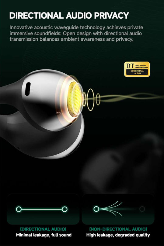指向性⾳声伝達で漏れを抑制。両⽿⾃動適応や空間オーディオにも対応