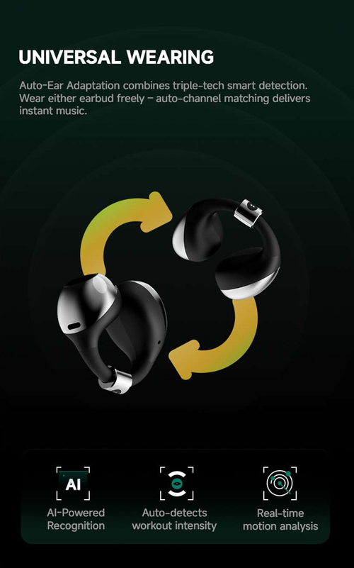 左右どちらの⽿にも⾃由に装着でき、⾃動でチャンネルを切り替えて即座に⾳楽再⽣を開始します。
