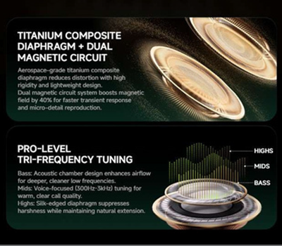 12mmチタン複合デュアルマグネットドライバーによる、⾳楽への没⼊感を