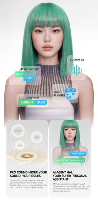 「 HALIHALI 」と呼びかけることで、AIエージェントが起動し、サウンド調整やバーチャルチャットが⼀つのコマンドで実現します。
