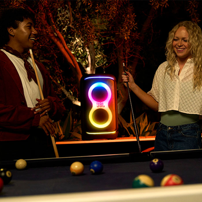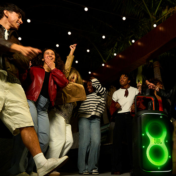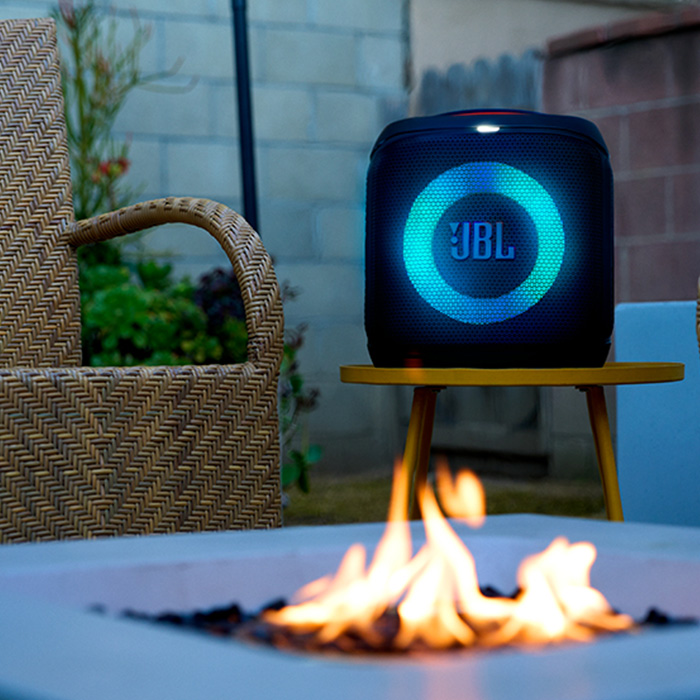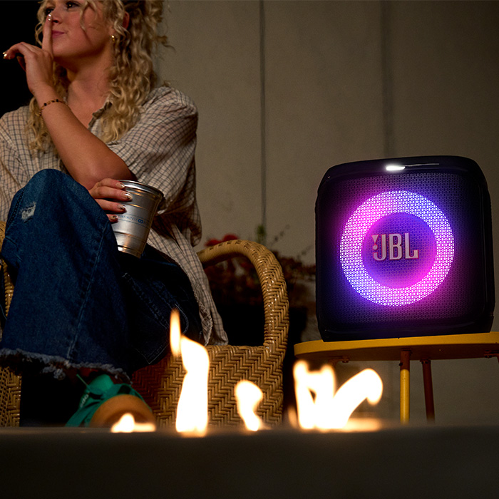 - シリーズ最小型の本体サイズを超える100Wの大出力 コンパクトながらもJBLらしい迫力のあるサウンドを実現します。