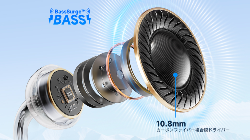 独自技術「BassSurge」によりオープンイヤーながら驚異的な低音表現を可能にしました。