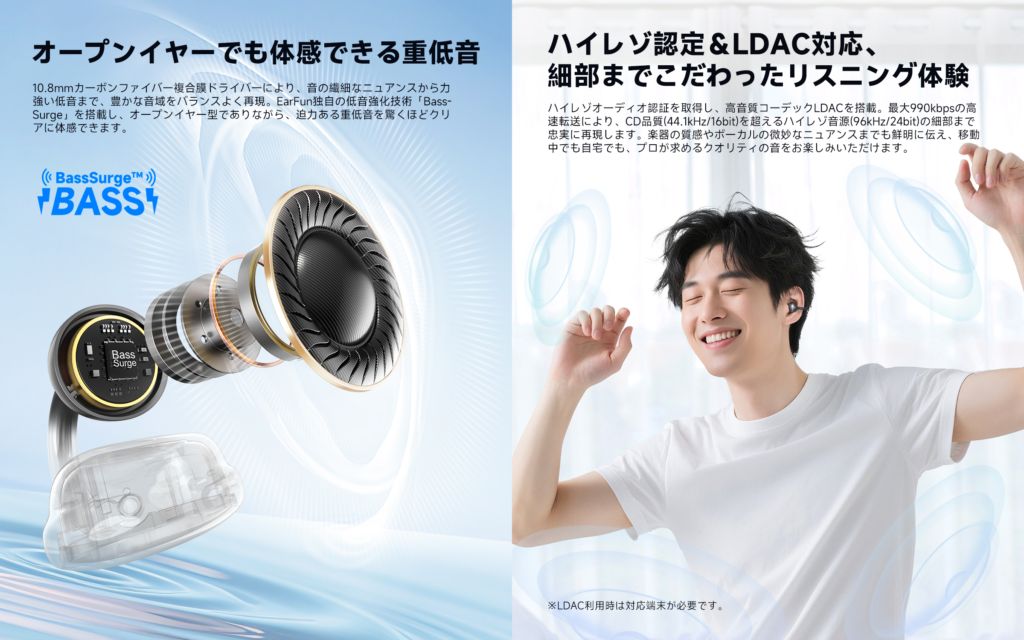 EarFunがカスタマイズしたカーボンファイバー振動板&ハイレゾ認定& LDAC対応
