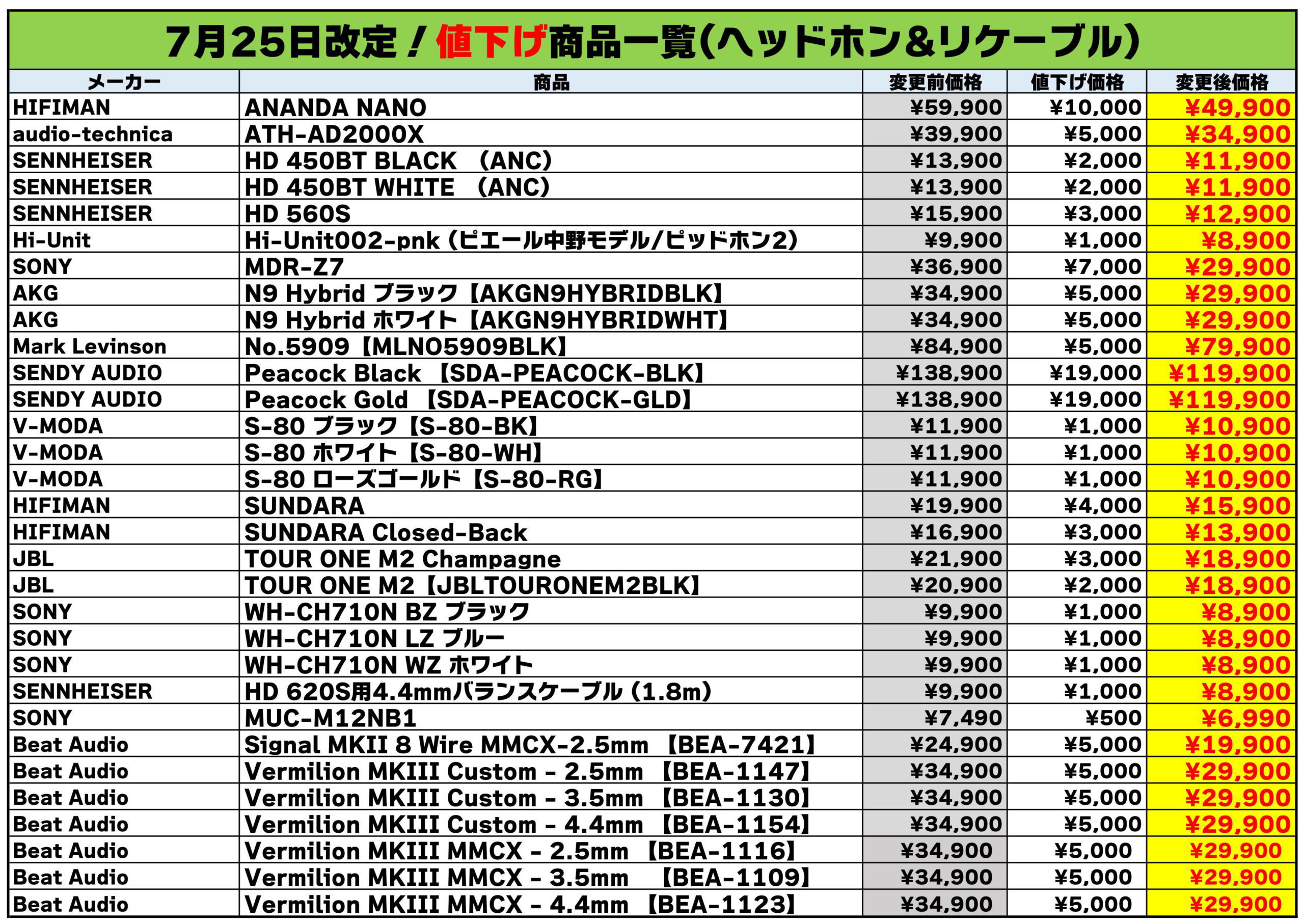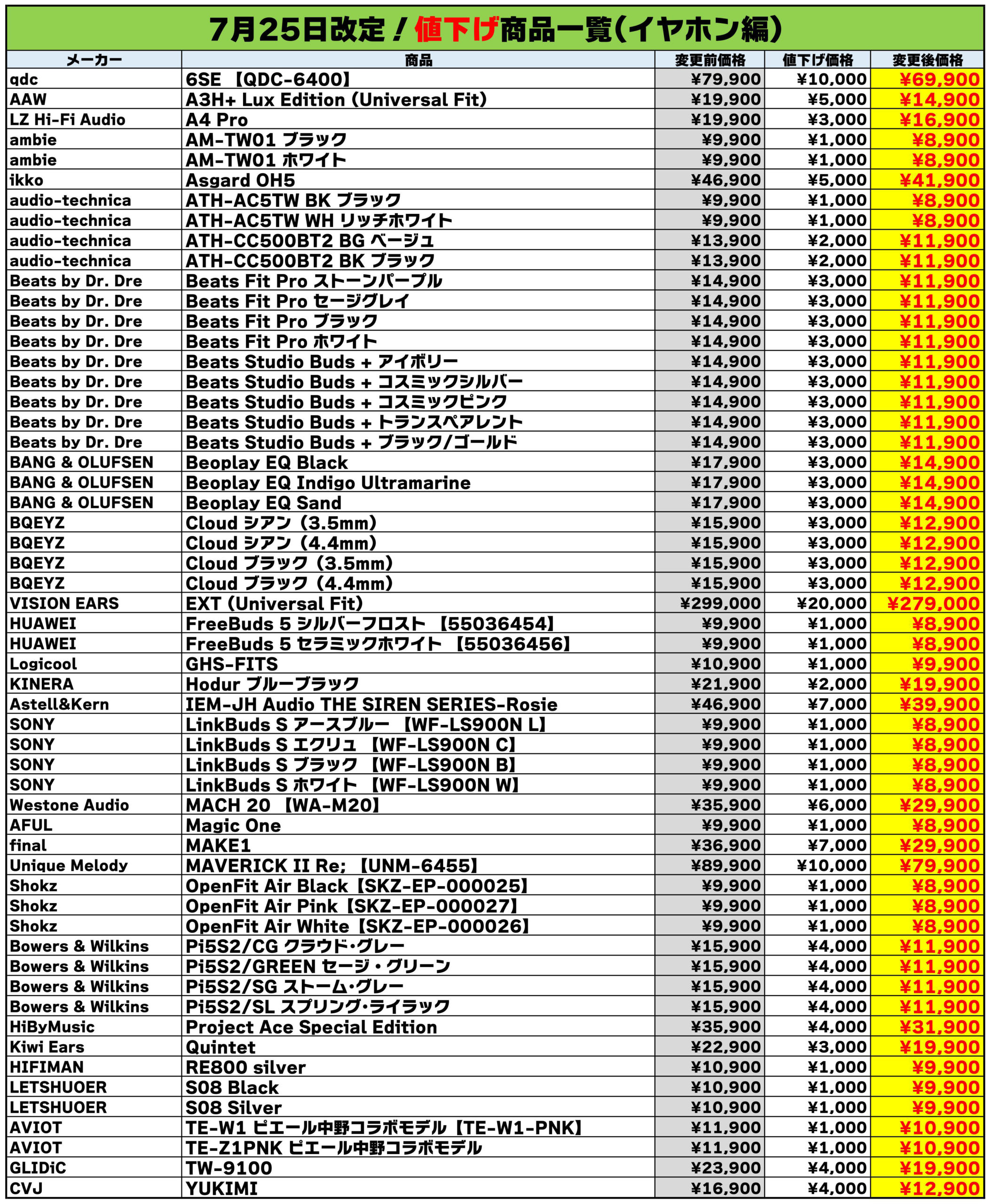 2025年7月25日最新版のe☆イヤホン中古商品お値下げ情報をお届けいたします!