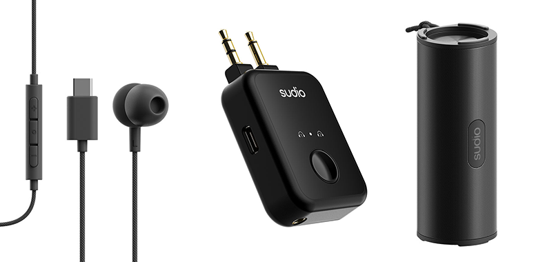 Sudioからライフスタイルに合わせた新製品が3種類登場!旅行に最適なトランスミッター、タフなポータブルスピーカー、進化した有線イヤホンをチェック!