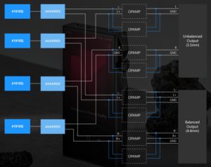 AK4191EQとAK4499EX DACが1対1の状態で4基搭載した、真のQuad DAC構成となる独自のOCTAオーディオ回路構造採用により、信号処理能力を大幅に強化。