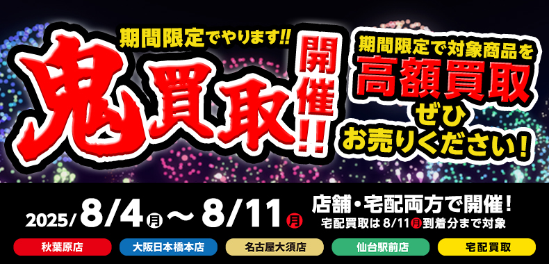期間限定で対象商品の査定額が大幅アップいたします!期間は8/4~8/11まで!