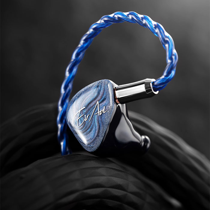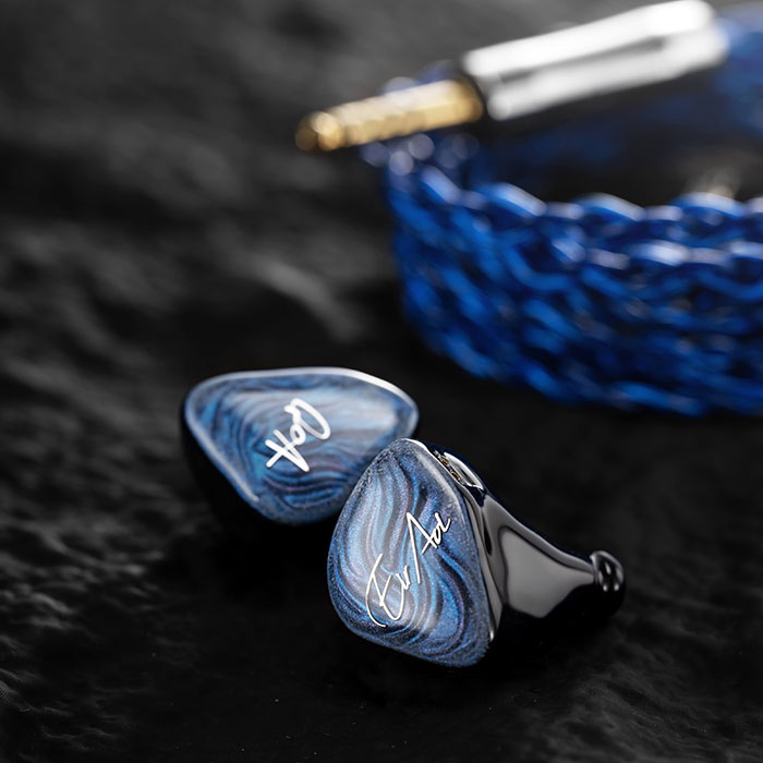 藍色の砂をシェルに封じ込めたこの特別なIEMは、藍井エイルの声の本質を捉えている。QoAデザインチームとのコラボレーションにより、流れる砂は時間を、深い青は大空を象徴しています。