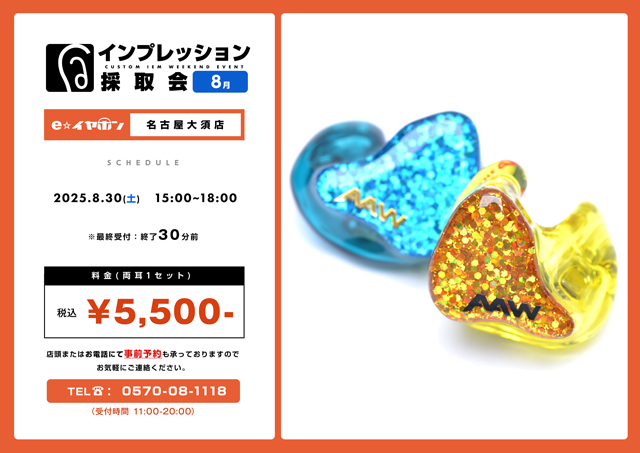 e☆イヤホン名古屋大須店で開催するインプレッション採取会!8月は30日(土)に実施致します!!
