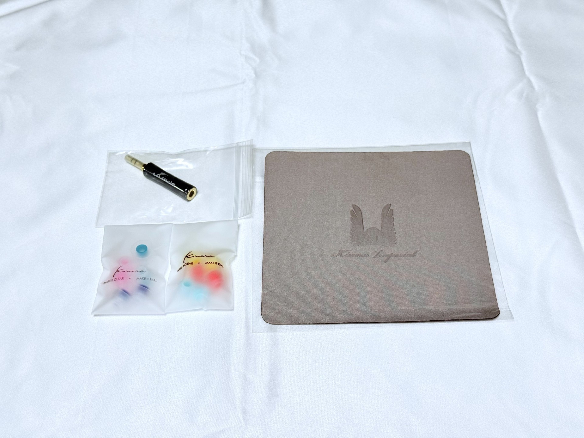 イヤピースが2種類に、クリーニングクロス、4.4mmから3.5mmの変換アダプターも?!?!?!
