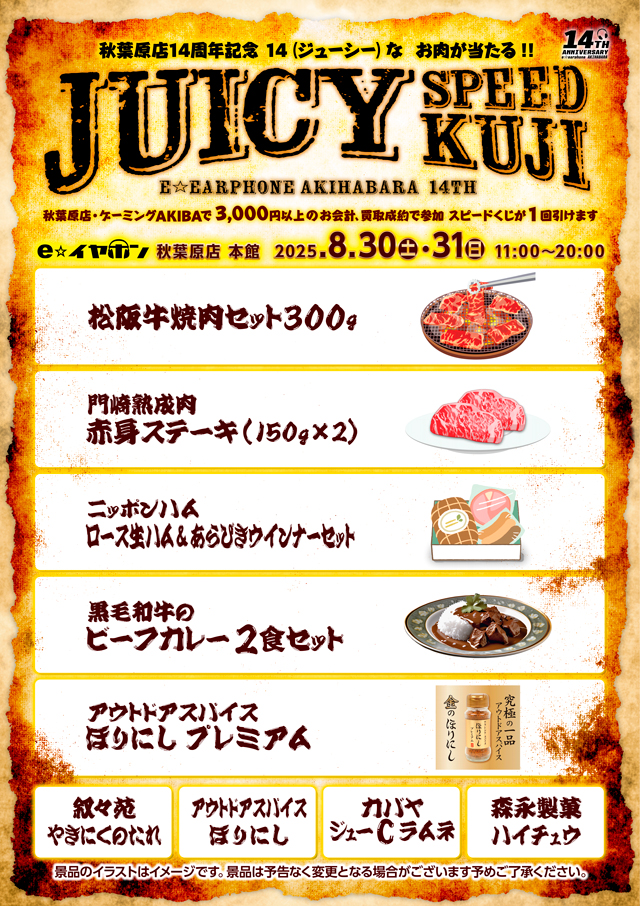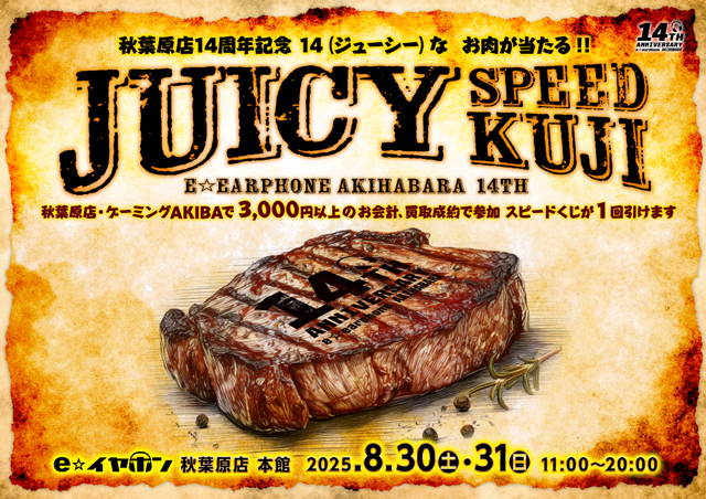 14(ジューシー)なお肉が当たる!! 秋葉原店14周年記念スピードくじ