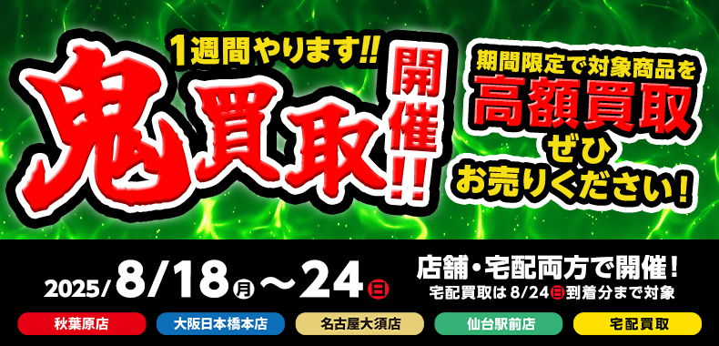 秋葉原店 / 大阪日本橋本店 / 名古屋大須店 / 仙台駅前店 / 宅配買取 で開催いたします!