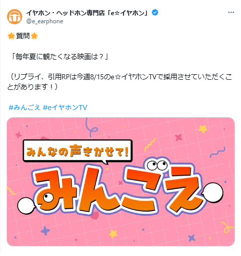 e☆イヤホン公式Xで募集しておりますので、ぜひリプライなどでお聞かせください!