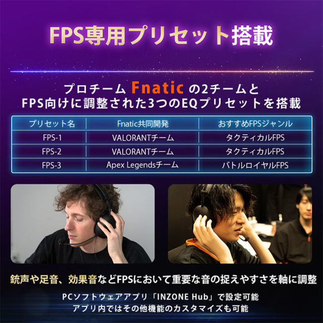 Fnaticの各チームの選手とタイトル最適のEQプリセットを開発・搭載プロが求めるプロと創った音づくりを体験可能