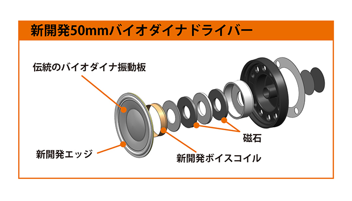 高解像度かつ非常に滑らかな音質で高評価を得てきたバイオダイナドライバーが大幅に進化。新開発のエッジにより振幅の安定性を向上することで、低域を余分に膨らませることなくタイトで引き締まった表現を可能としています、さらには不要共振を抑制することで余計な付帯音による濁りを解消し自然で滑らかな中音域を実現しました。量感と深みを保ちながらタイトな低域と透明度が高く見通しの良い中域から艶やかな高域まで、音楽の情報を余すことない高密度でクリアかつ滑らかな音質をお楽しみいただけます。