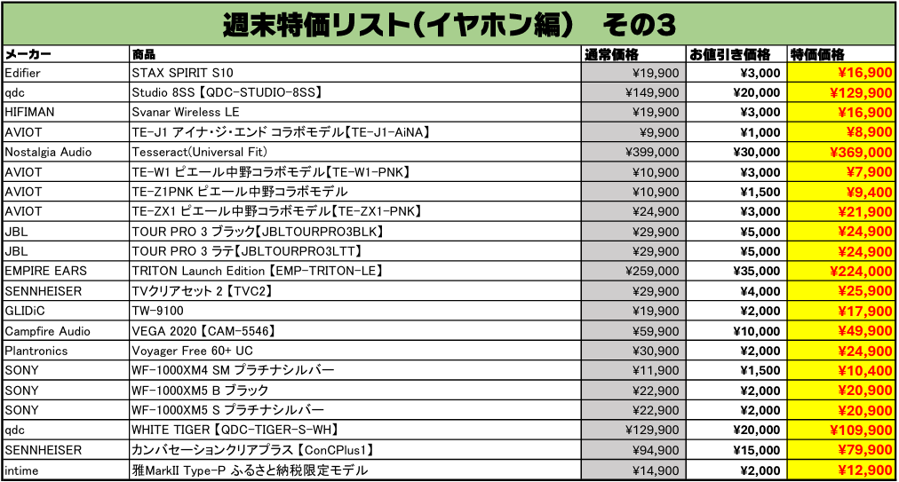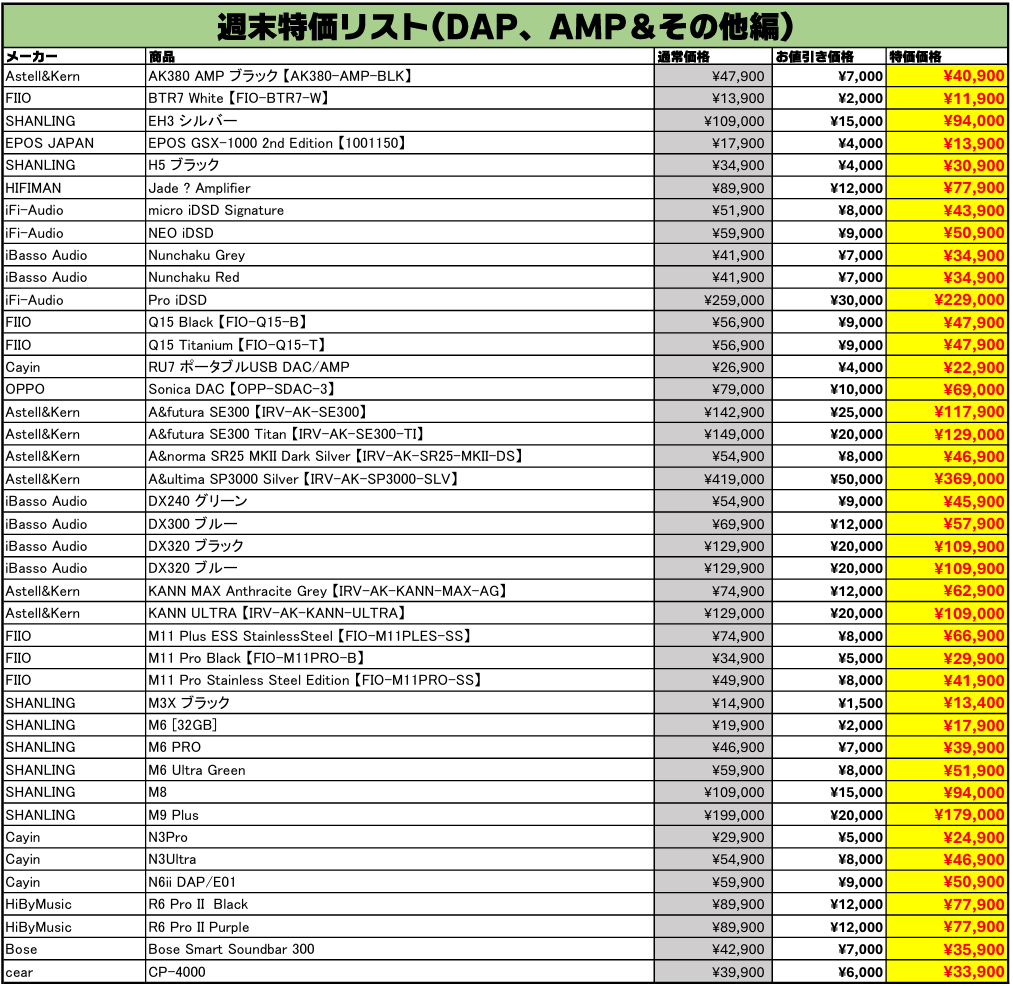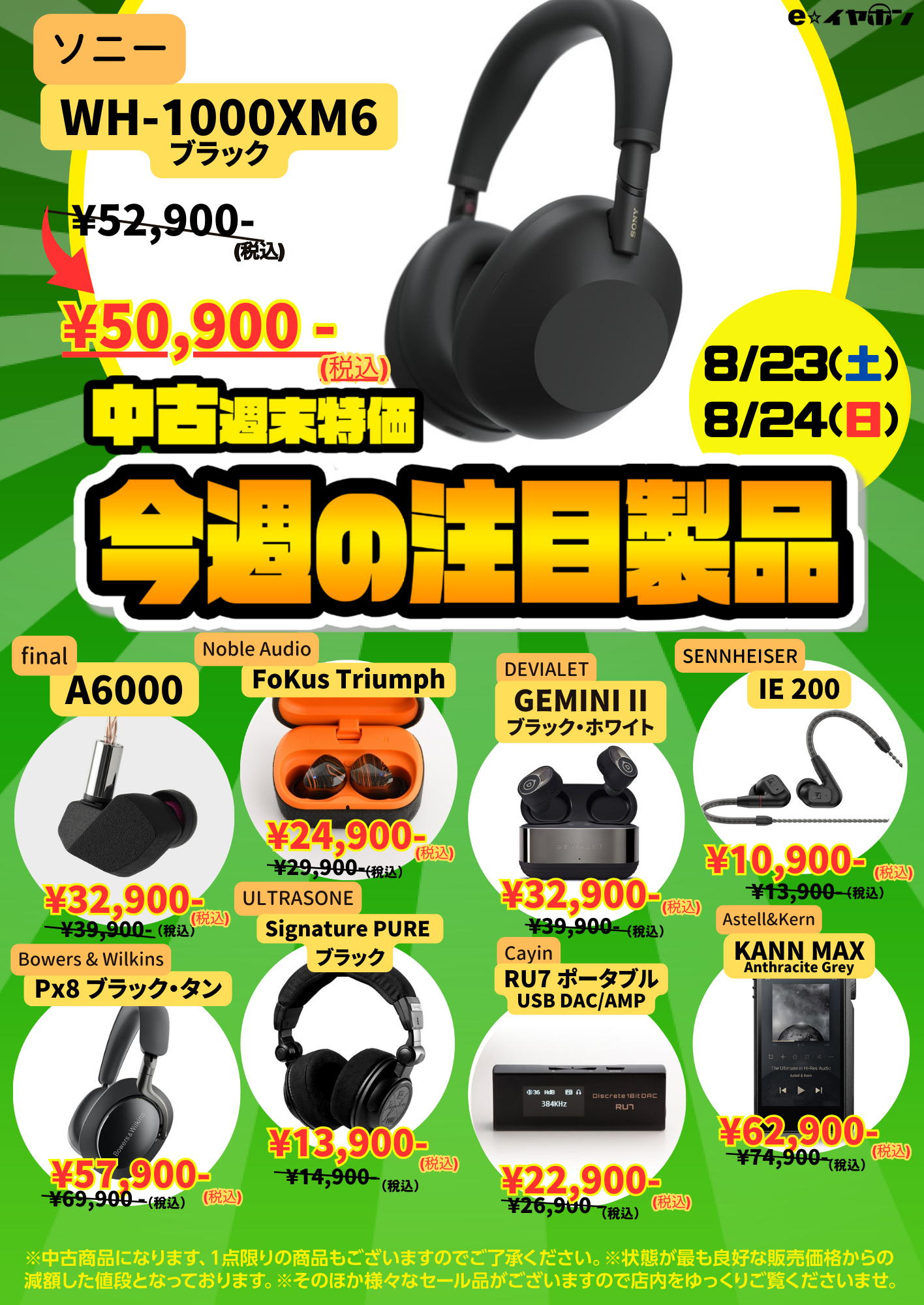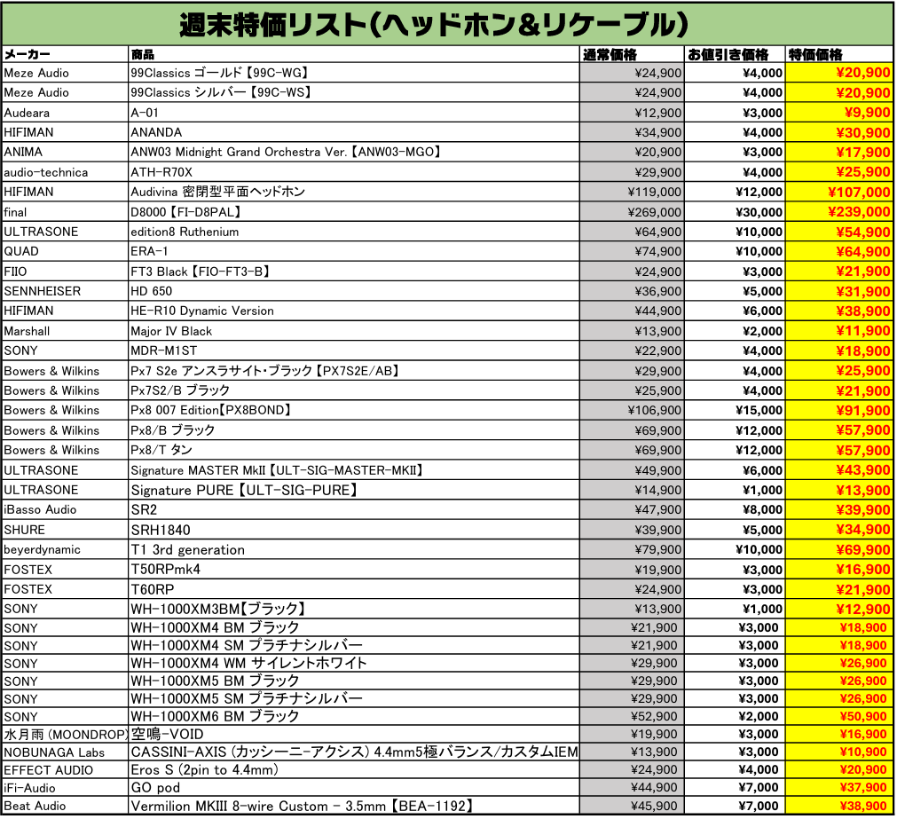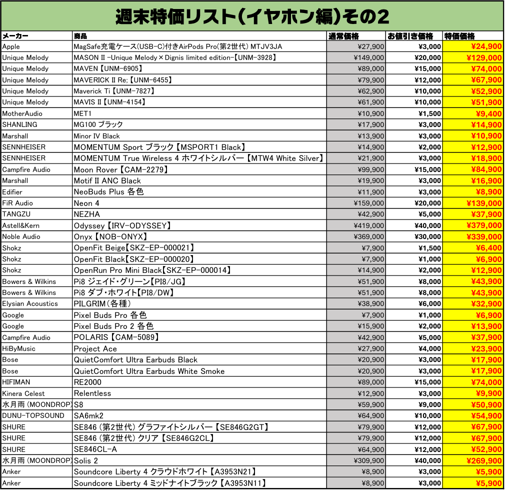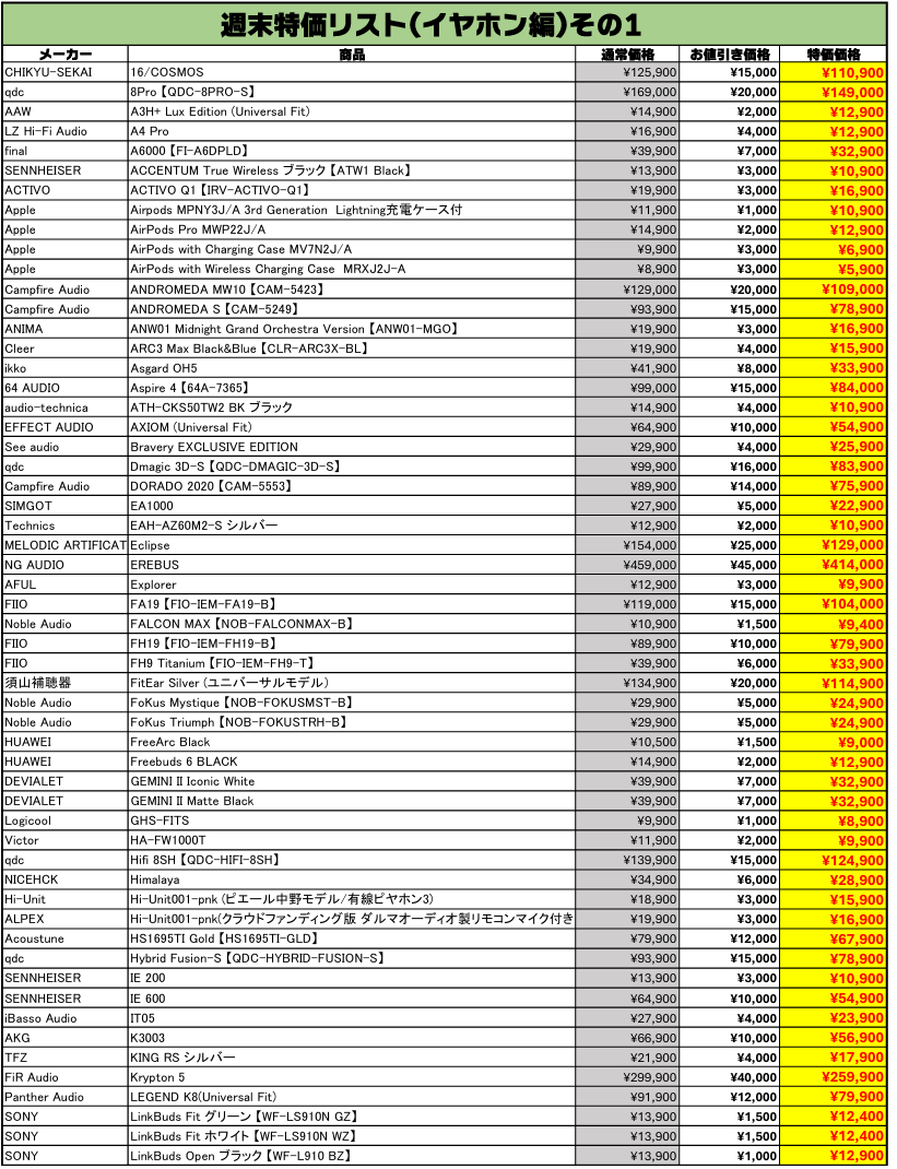 イヤホンを売るなら買うなら、e☆イヤホン!お得な中古週末特価情報をご案内します。今回もe☆イヤホンの実店舗とオンラインストアの両方で、週末特価を開催いたします!