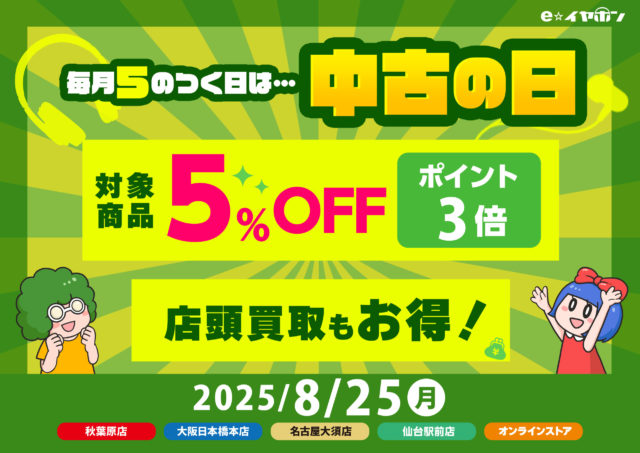 イヤホン売るなら買うなら――e☆イヤホン!明日2025年8月25日(月)から中古の日を開催いたします。