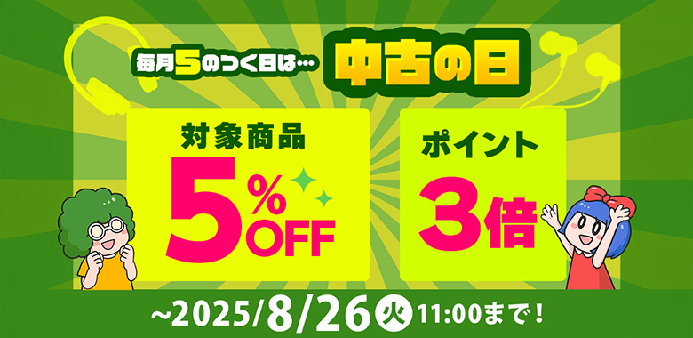中古商品5%OFF&ポイント3倍に!8月25日(月)は中古の日を開催いたします!