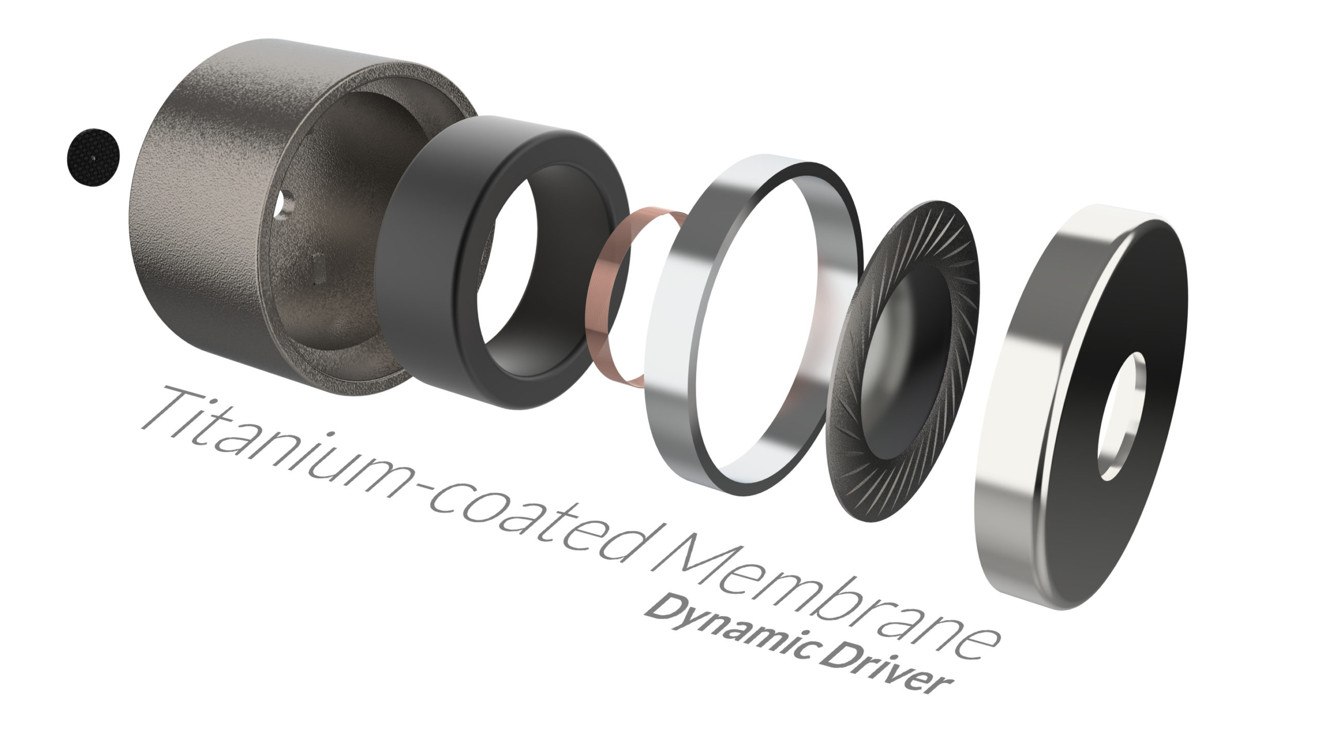 ZEPHYRの為に特別に設計されたダイナミックドライバー(DD)はチタンの優れた機械的特性を利用し、蒸着プロセスで作成された軽量チタンコーティング膜を採用しています。