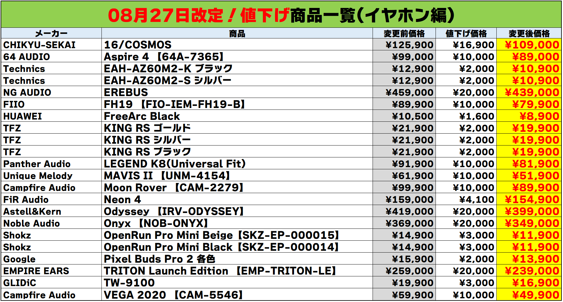 以上、お得な価格改定情報でした。e☆イヤホン リユース営業部のかわちゃんがお送りいたしました!