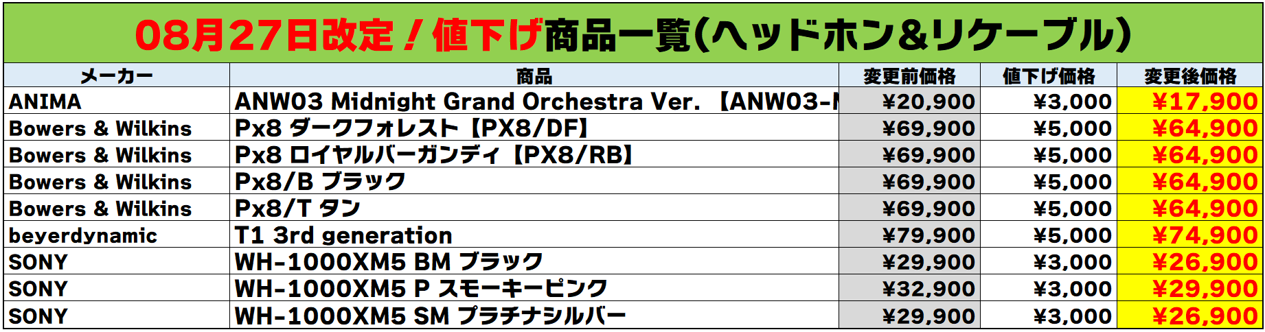 イヤホン売るなら買うならe☆イヤホン!この記事では毎回週1ぐらいのペースで更新している、中古商品の最新値下げ情報をお届けいたします。