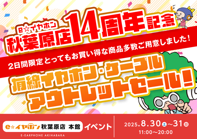 お店で試聴機としていた使われていたイヤホンやケーブルを限定特価でお届け……!なかなか手に入らないレアな製品多数…!?さらに今回は周年特別サービスもある!?!?
