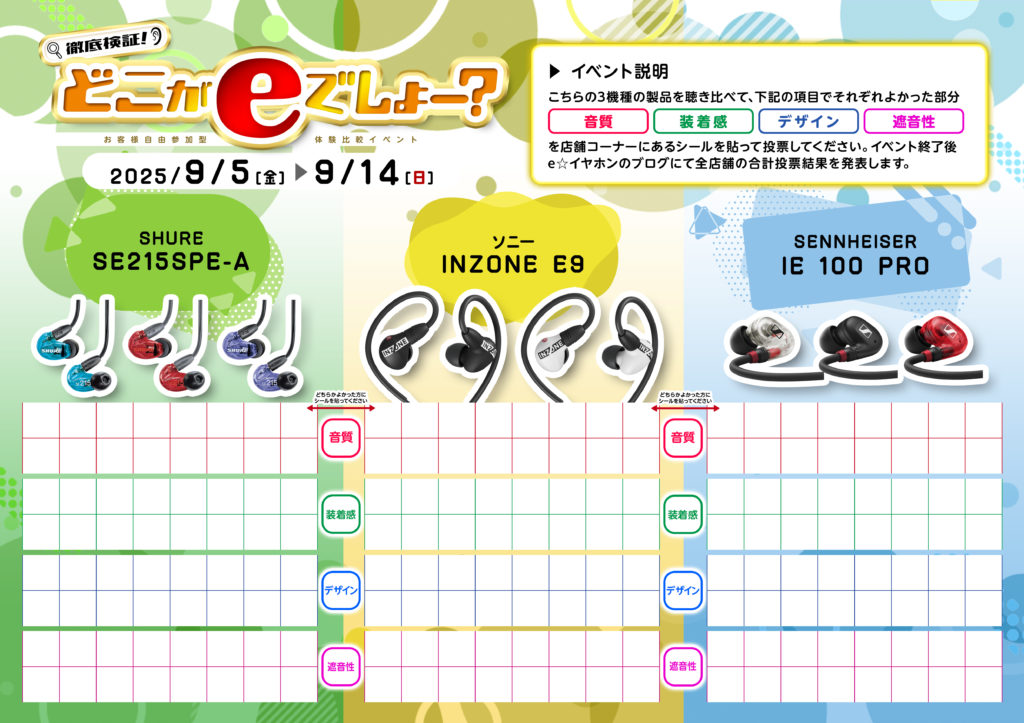 9/5(金)よりe☆イヤホン各店にて比較試聴いただけます!