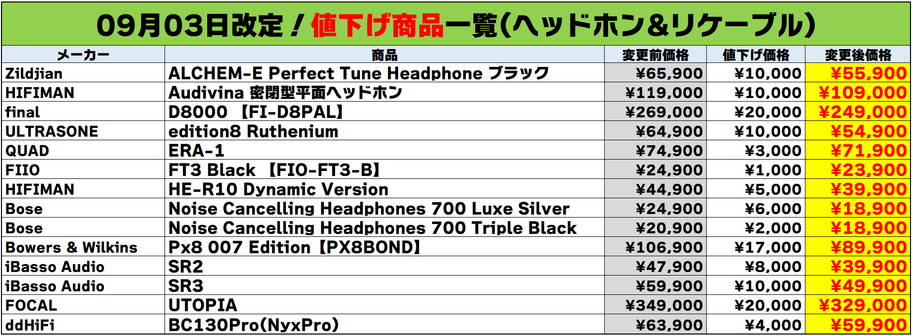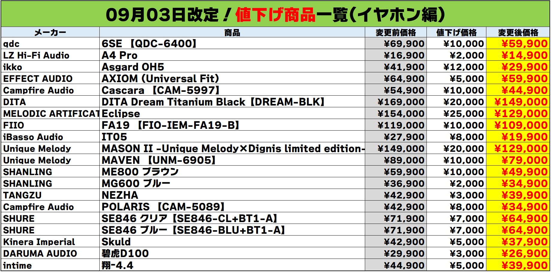 イヤホン売るなら買うならe☆イヤホン!この記事では毎回週1ぐらいのペースで更新している、中古商品の最新値下げ情報をお届けいたします。