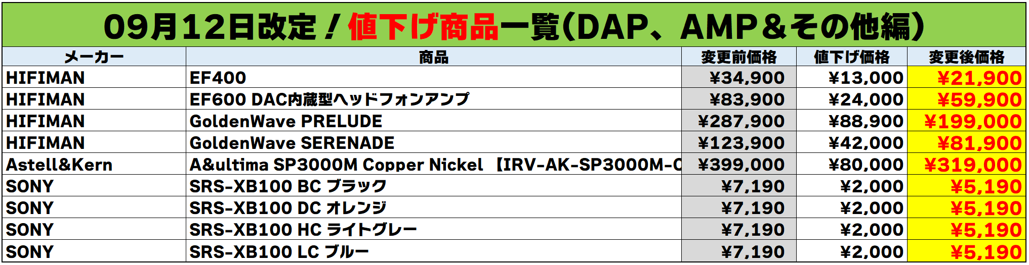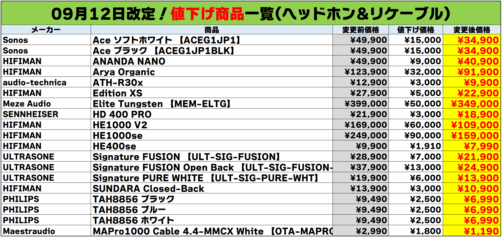 イヤホン売るなら買うならe☆イヤホン!この記事では毎回週1ぐらいのペースで更新している、中古商品の最新値下げ情報をお届けいたします。