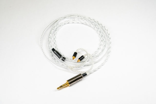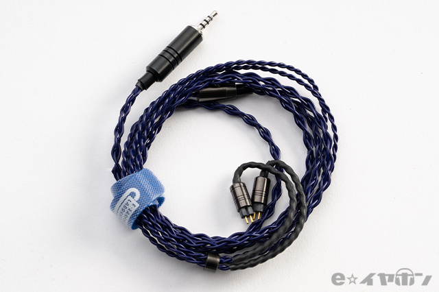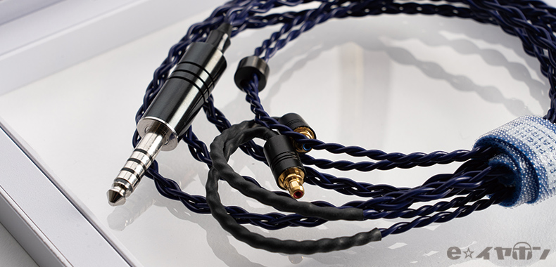 古河電気工業株式会社のPCUHD素材にAGESと呼ばれるe☆イヤホン・ラボ独自の手法、ピーリング処理+銀メッキ処理+素線特殊撚りの行程が素線の製造含め一貫製造及び最適化された初の導体を用いたイヤホン用ケーブル
