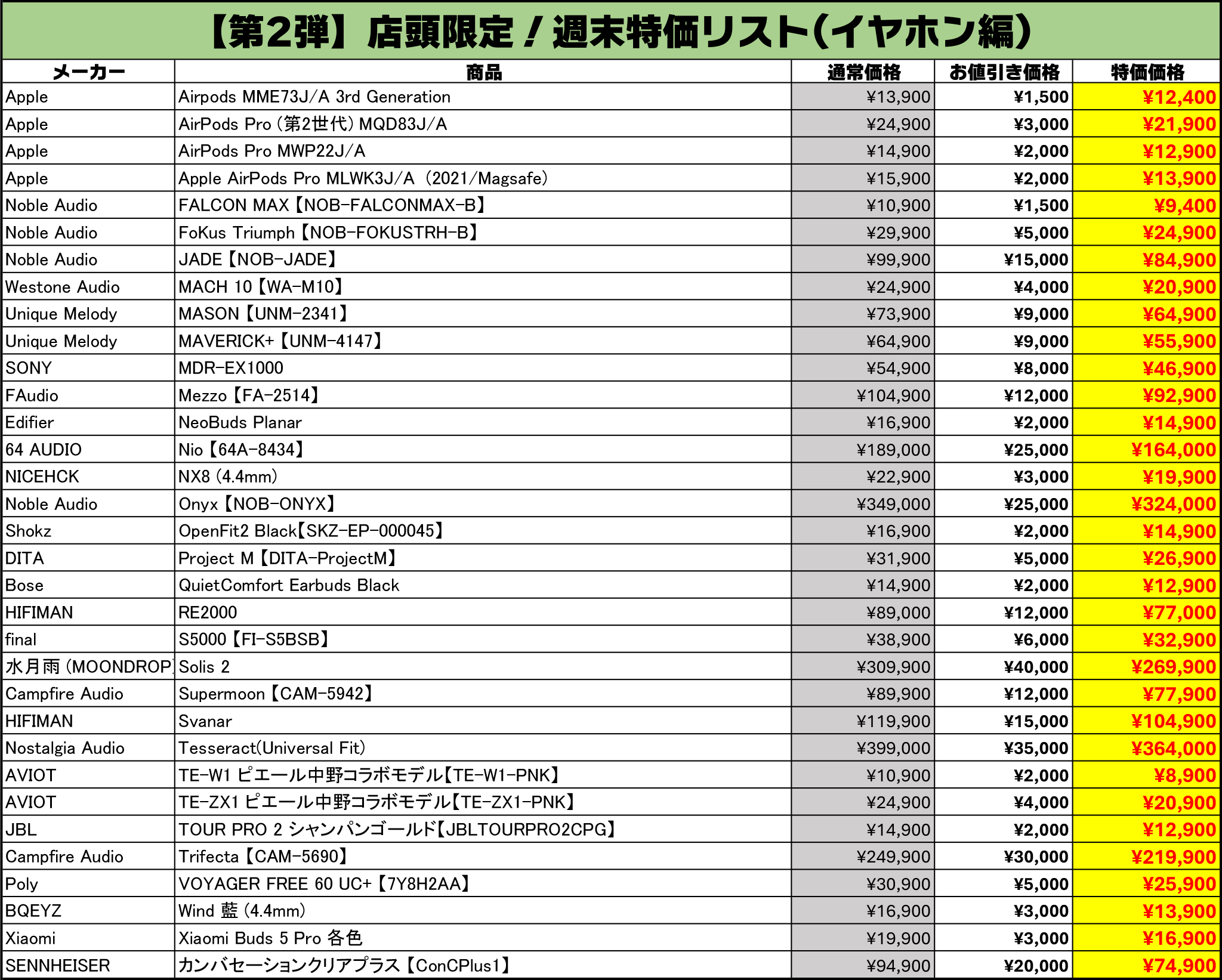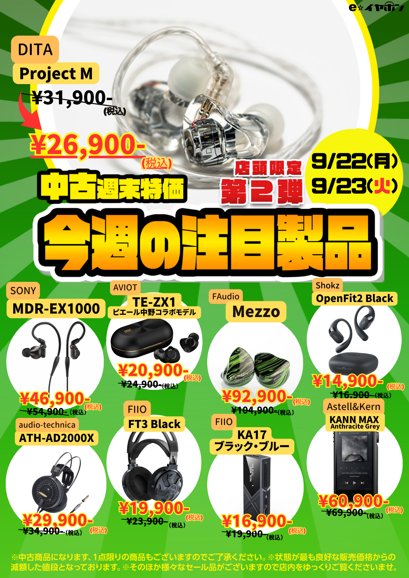 今回のe☆イヤホン中古週末特価は2部構成!後半のセールは店頭限定で開催いたします