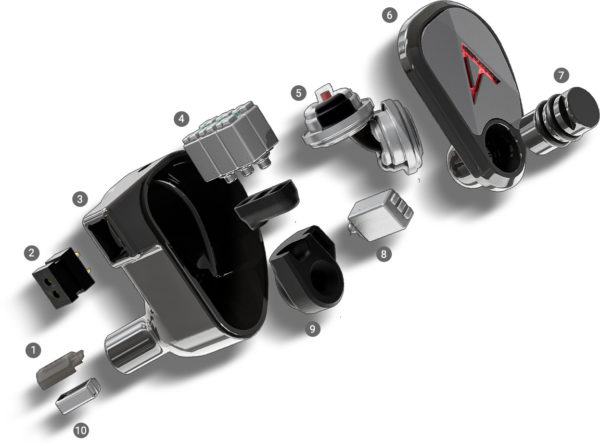 XIOは、トゥルーアイソバリック・デュアルダイナミックドライバー、ミッドレンジ用BAドライバー6基、中高域用BAドライバー1基、高域用に64 Audio独自の「tia」(Tubeless In ear Audio)ドライバーを採用。