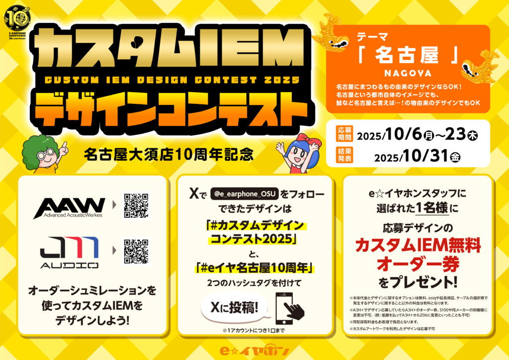 名古屋大須店10周年記念カスタムIEMデザインコンテスト応募期間:10月06日(月)~10月23日(木)投稿分まで