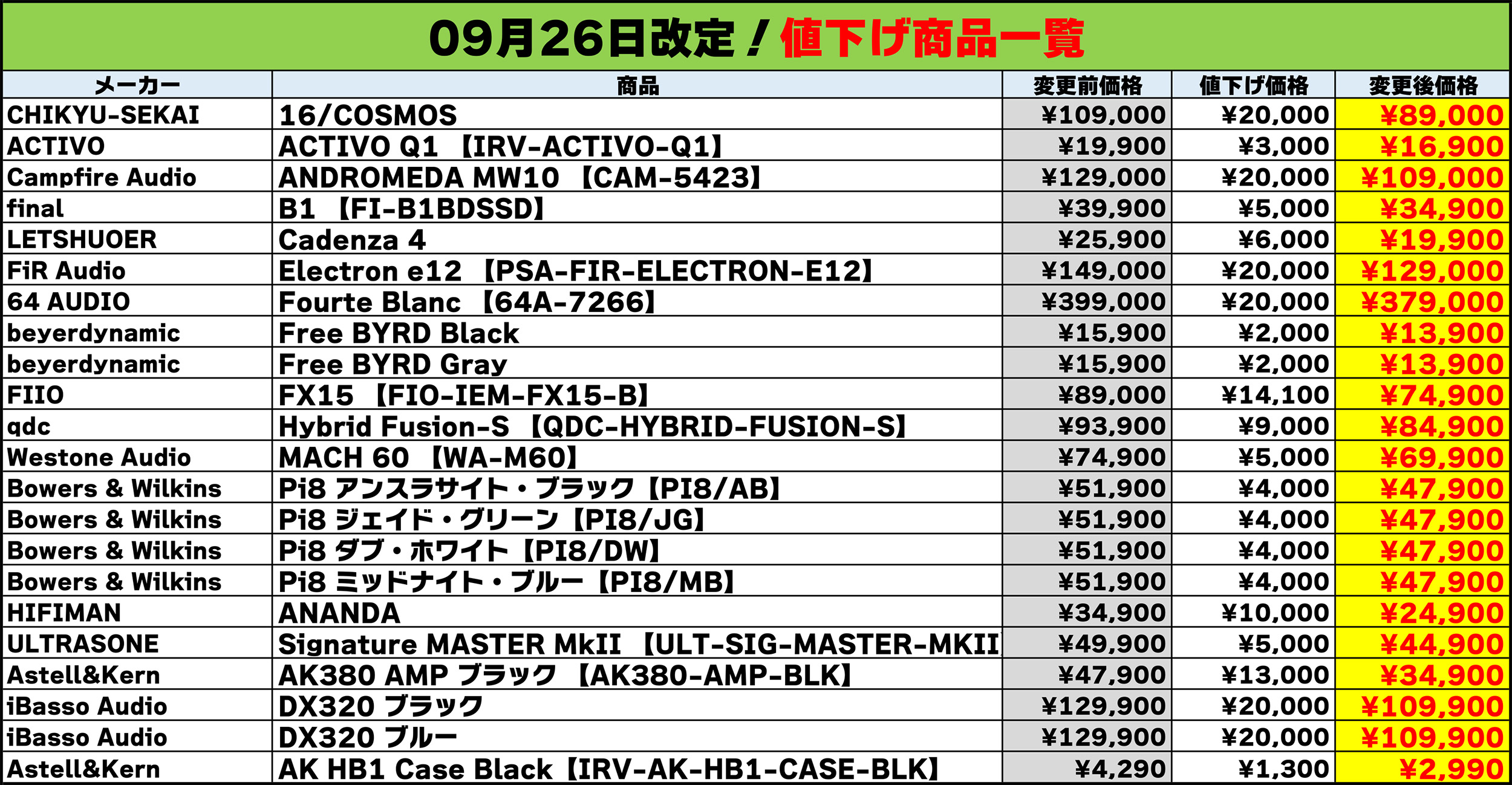 以上、お得な価格改定情報でした。e☆イヤホン リユース営業部のかわちゃんがお送りいたしました!