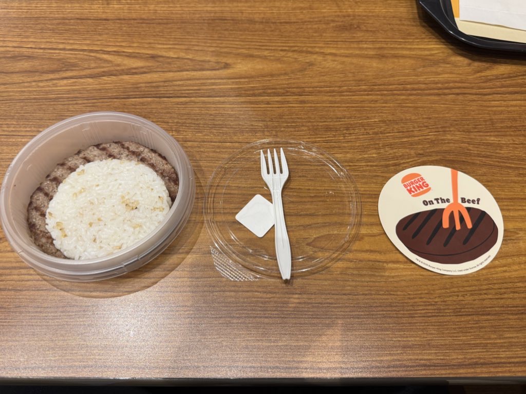 バーガーキングで肉と米だけの奴があったんですけど、マジで肉と米だけでわらっちまったよ。肉と米すぎる。(ステッカーはついてきた)