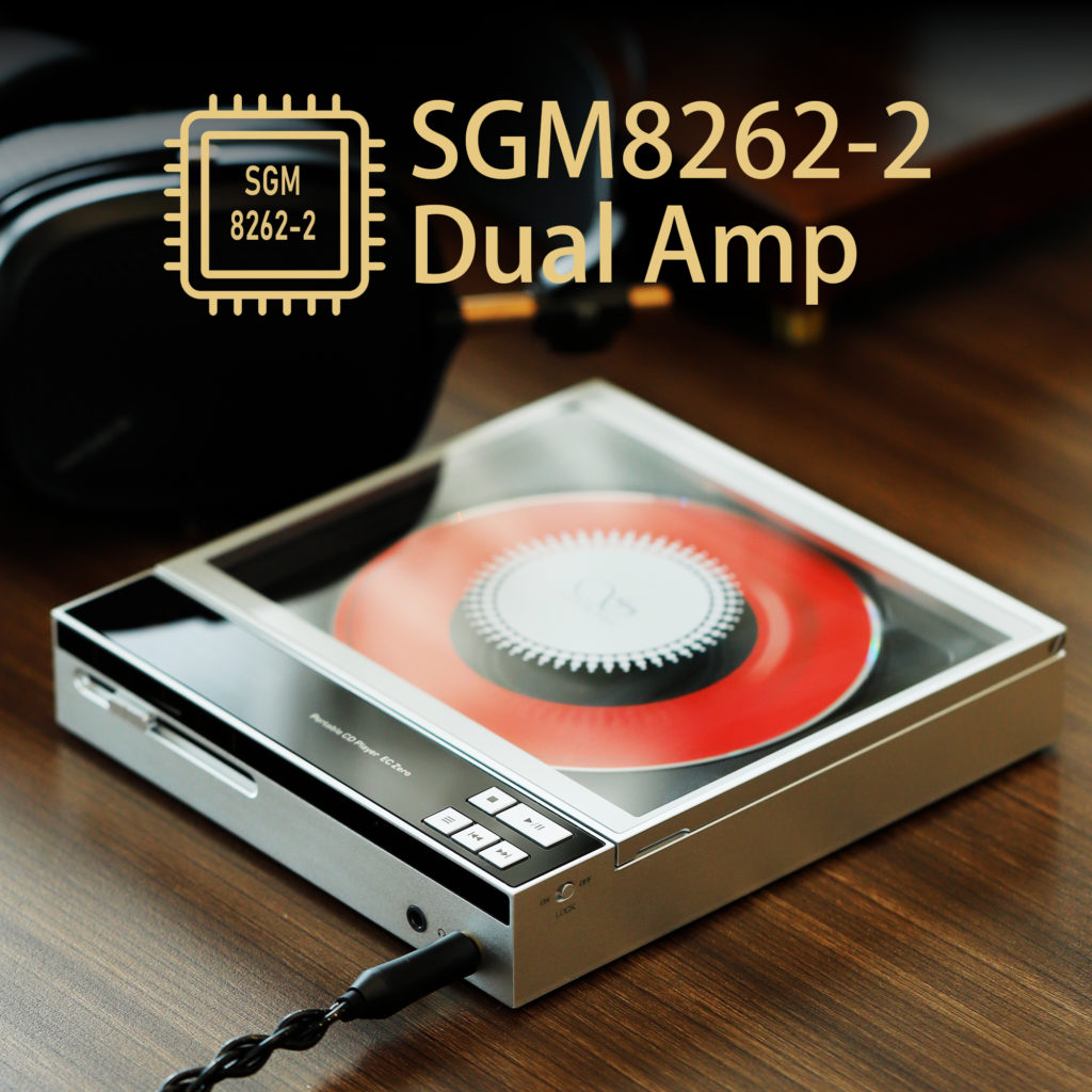 EC Zeroの後段であるAMP部には、強力なダイナミックレンジと低歪みに定評のあるSGMicro社の「SGM8262-2」をデュアル構成で採用しています。 バッテリー動作時には最大「525mW@32Ω」の出力を有し、ポータブル環境でイヤホンやヘッドフォンを快適にご利用頂けます。